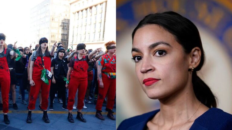 La congresista demócrata por Nueva York acudió a las afueras de la Corte Suprema de Estados Unidos para unirse a las protestas. En un momento, tuvo que ser rodeada por sus adeptos cuando se le comenzaron a acercar quienes estaban en contra del aborto. Para agradecer el gesto, recordó el mensaje del colectivo artístico chileno.