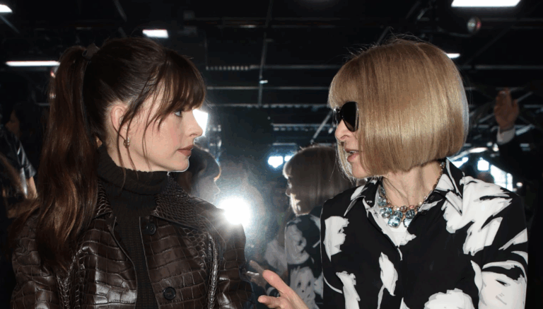La vida imitó al cine casi a la perfección durante el desfile de Michael Kors: la actriz se sentó junto a la editora en jefe de Vogue, Anna Wintour, mientras lucía un atuendo similar al de su personaje Andrea Sachs. Revisa a continuación todos los detalles del look de la semana.