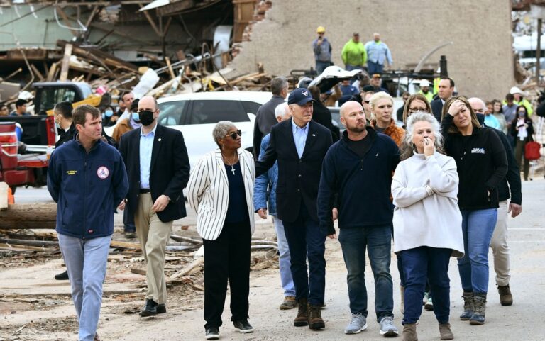 "No duden en pedir cualquier cosa": Biden recorrió la zona devastada por los tornados en Kentucky