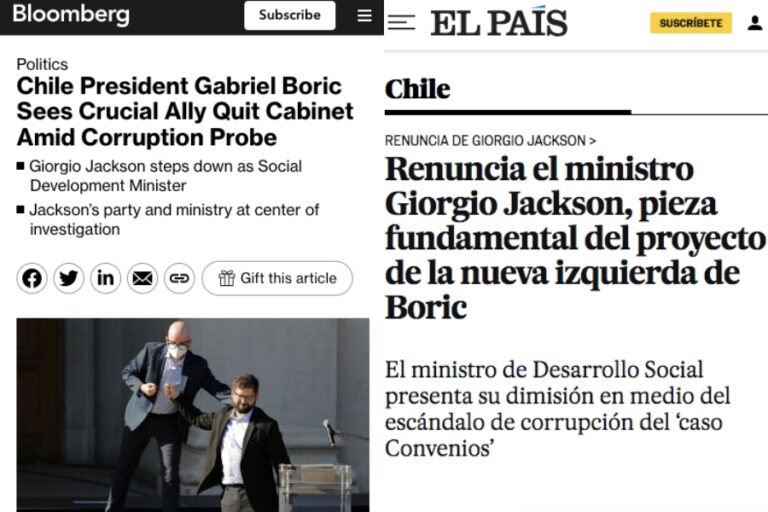 "La renuncia más dolorosa" y "terremoto en la política de Chile": Así cubrió la prensa internacional la salida de Jackson