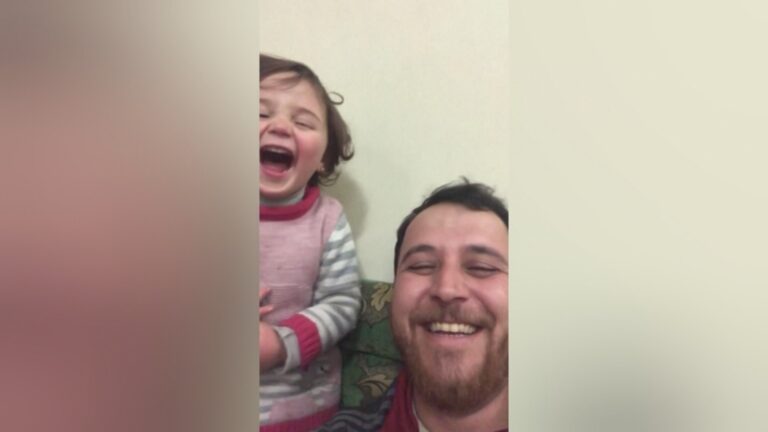 "La Vida es Bella": Padre hace reír a su hija a carcajadas con el sonido de las explosiones en Siria