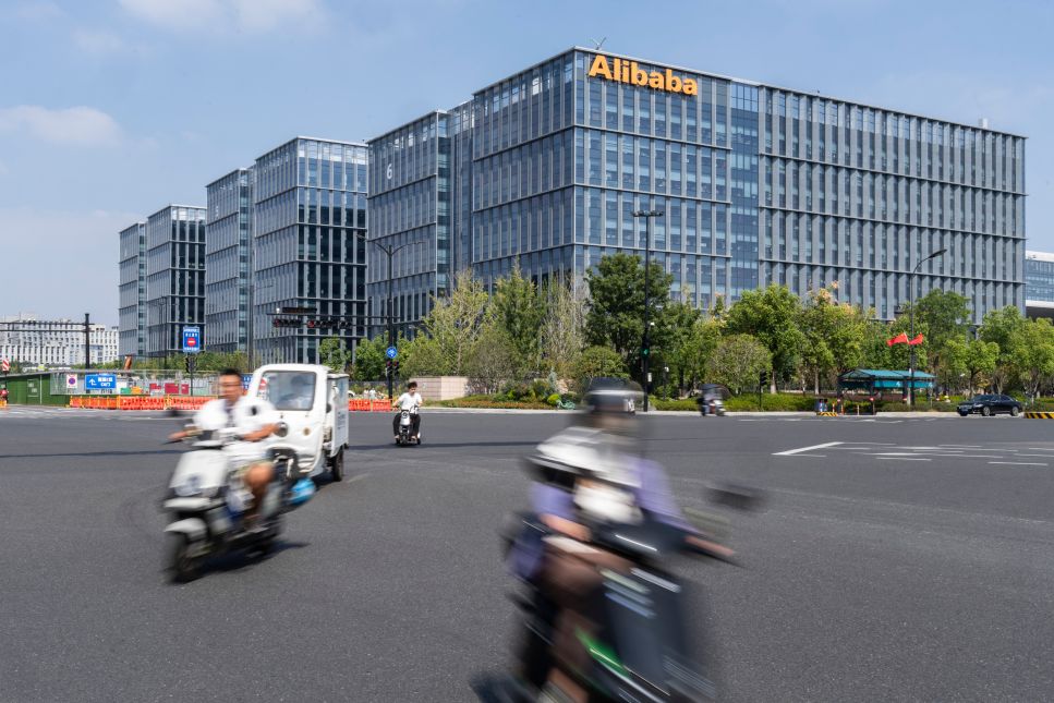 Señalización en lo alto de un edificio en la sede de Alibaba Group Holdings Ltd. en Hangzhou, China, el 9 de octubre de 2025. Qilai Shen/Bloomberg/Getty Images.