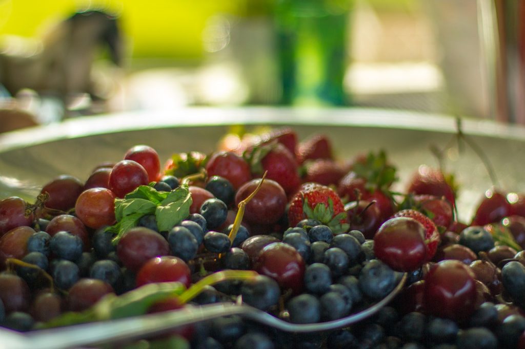 – Una combinación de fresas, frambuesas y moras con crema batida.