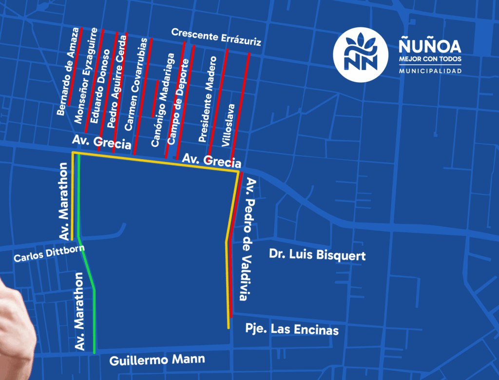 - Avenida Grecia, acera sur, desde Avenida Marathon hasta Avenida Pedro de Valdivia.