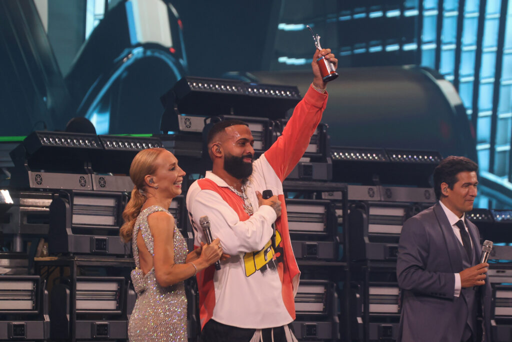 Eladio Carrión recibe la Gaviota de Plata durante el 64 Festival Internacional de la Canción Viña 2025 en la Quinta Vergara.