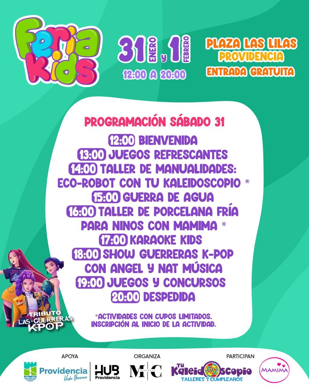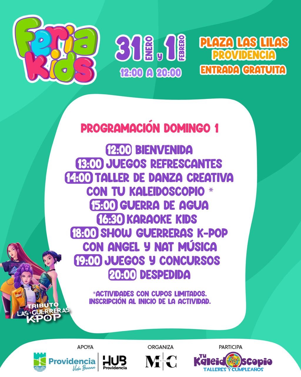 La Feria Kids Providencia se realizará los días 31 de enero y 1 de febrero en la Plaza Las Lilas, entre las 12:00 y las 20:00 horas