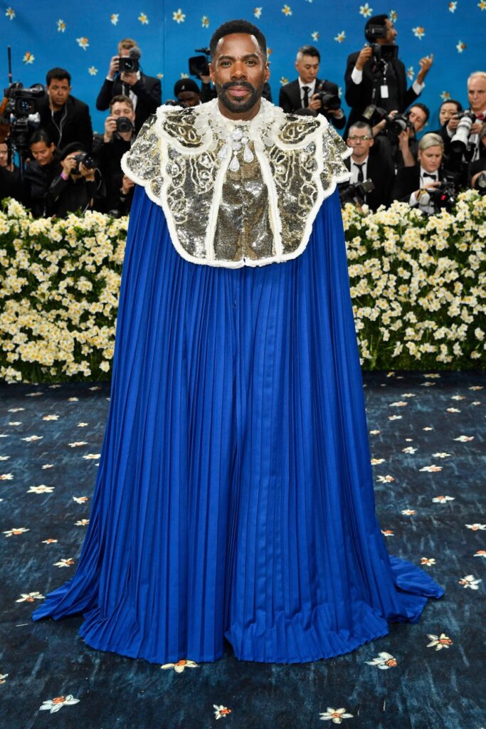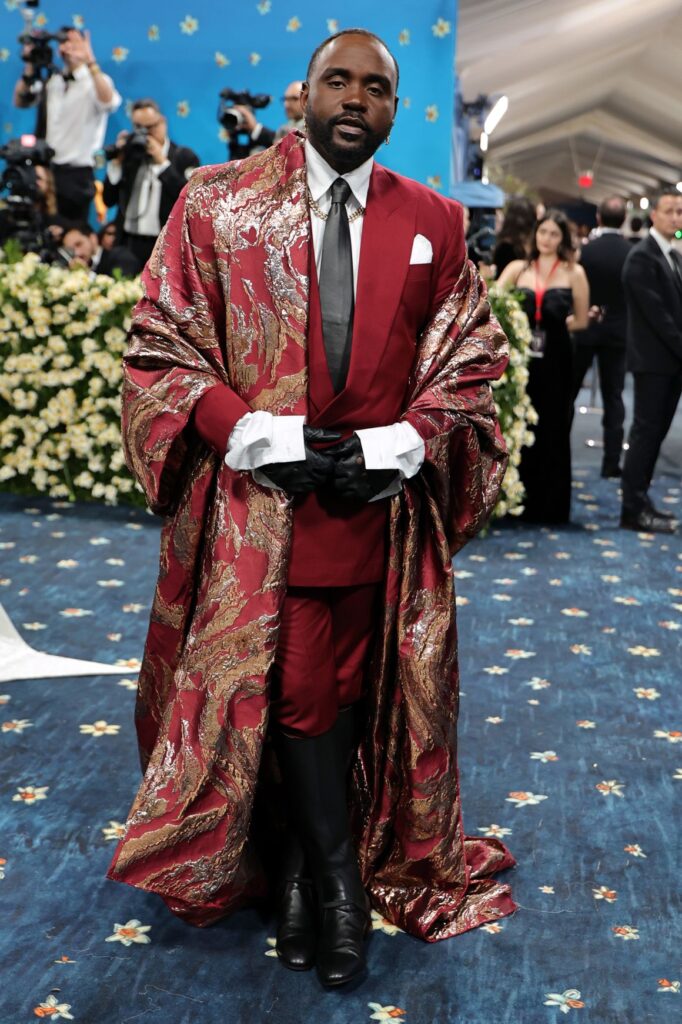 El primer look de Colman Domingo, copresidente del evento, para la Gala del Met es una dramática capa de Valentino que llega hasta el suelo, en parte haciendo referencia al icónico atuendo de reyes y del fallecido estilista André Leon Talley para la Gala del Met de 2011