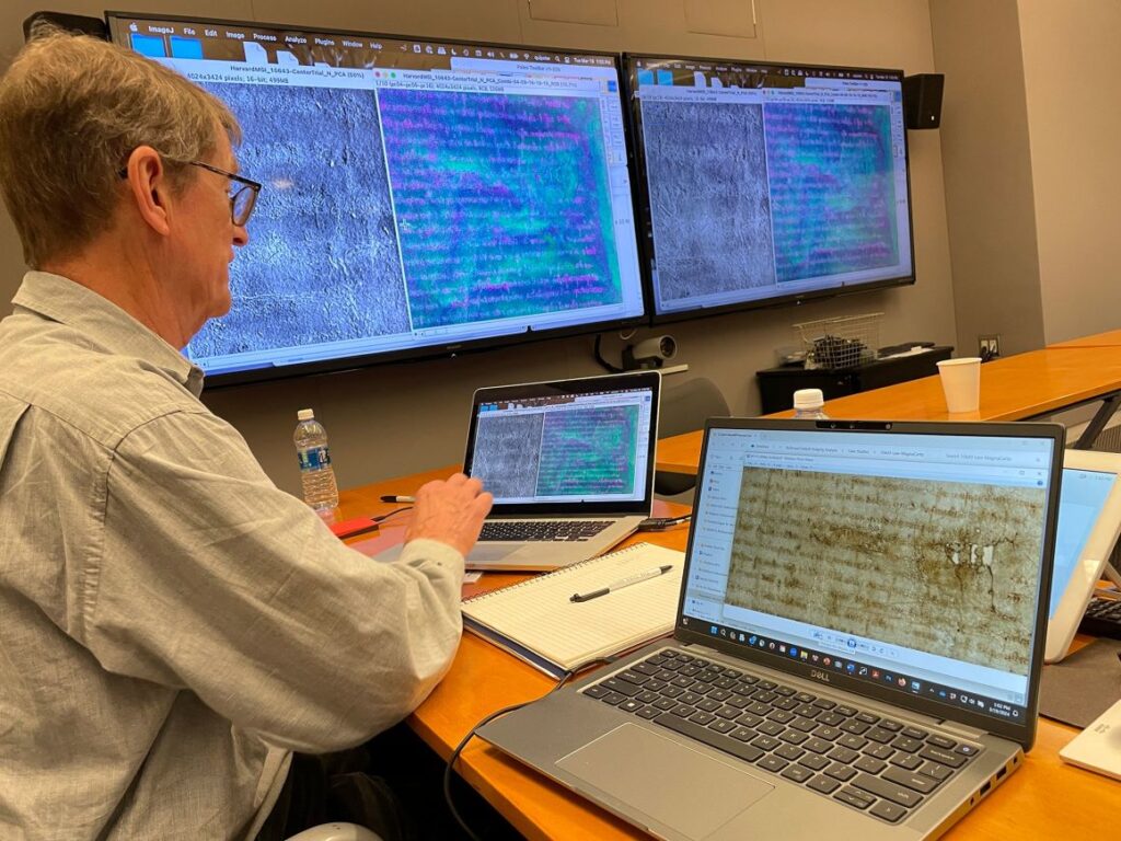 Posteriormente, imágenes en luz ultravioleta y otras proporcionadas por la facultad permitieron comparar el contenido del manuscrito con los textos ya verificados.