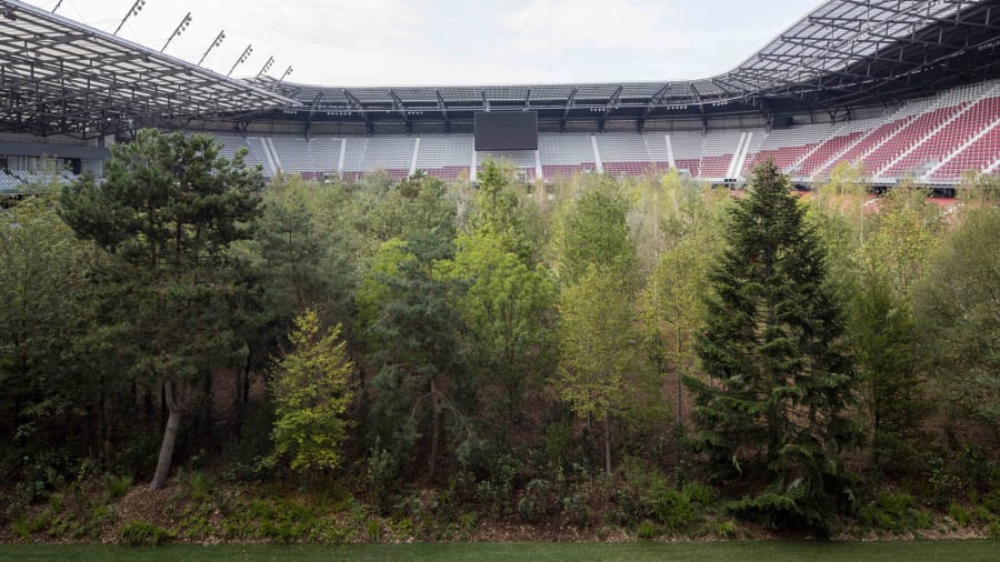 El Wörthersee Stadium ha sido transformado en un bosque magnífico por un nuevo proyecto del artista suizo Klaus Littmann.