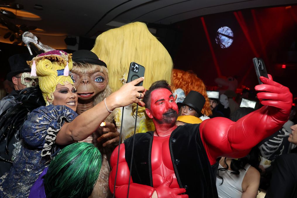 Los invitados se hacen selfies con Heidi Klum disfrazada durante la fiesta. Mike Coppola/Getty Images via CNN Newsource