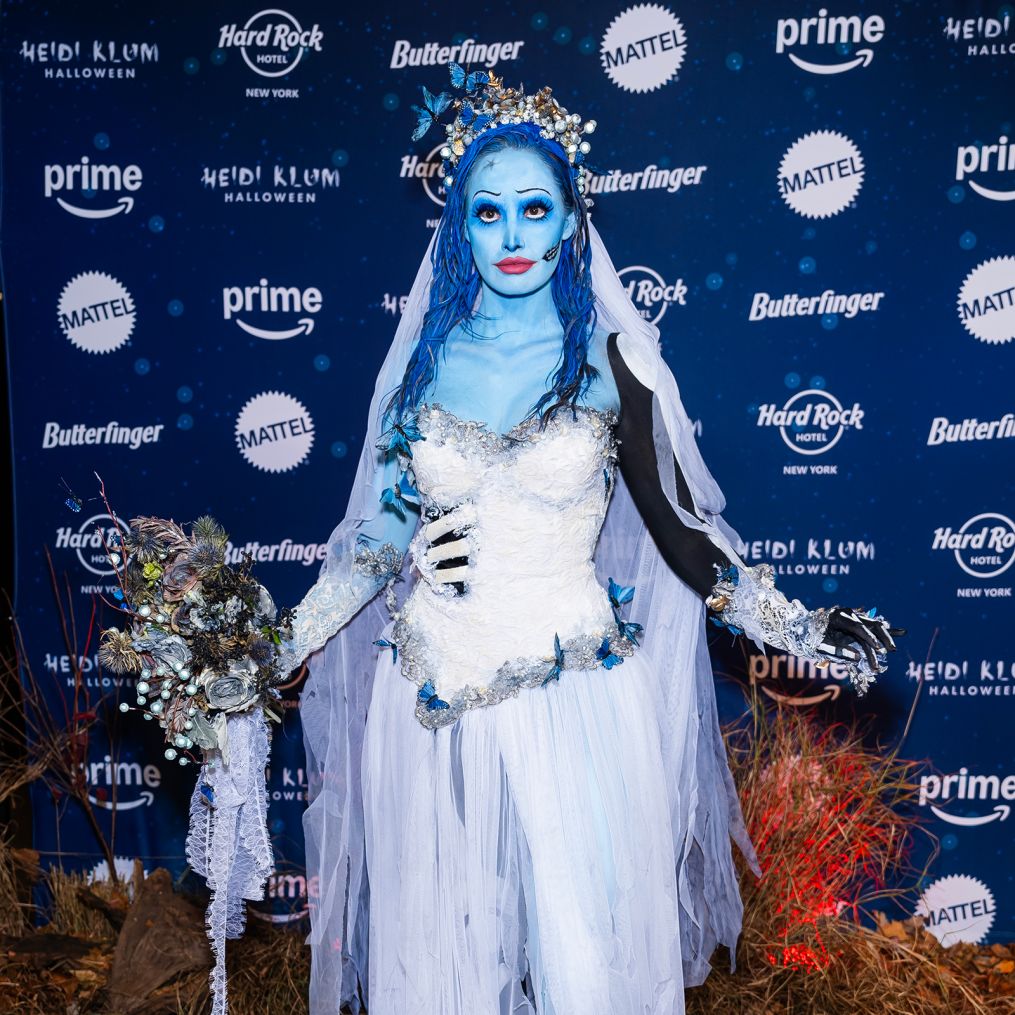 La modelo Haley Kalil acudió el jueves a la fiesta anual de Klum vestida de “La novia cadáver” de Tim Burton. TheStewartofNY/WireImage/Getty Images vía CNN Newsource