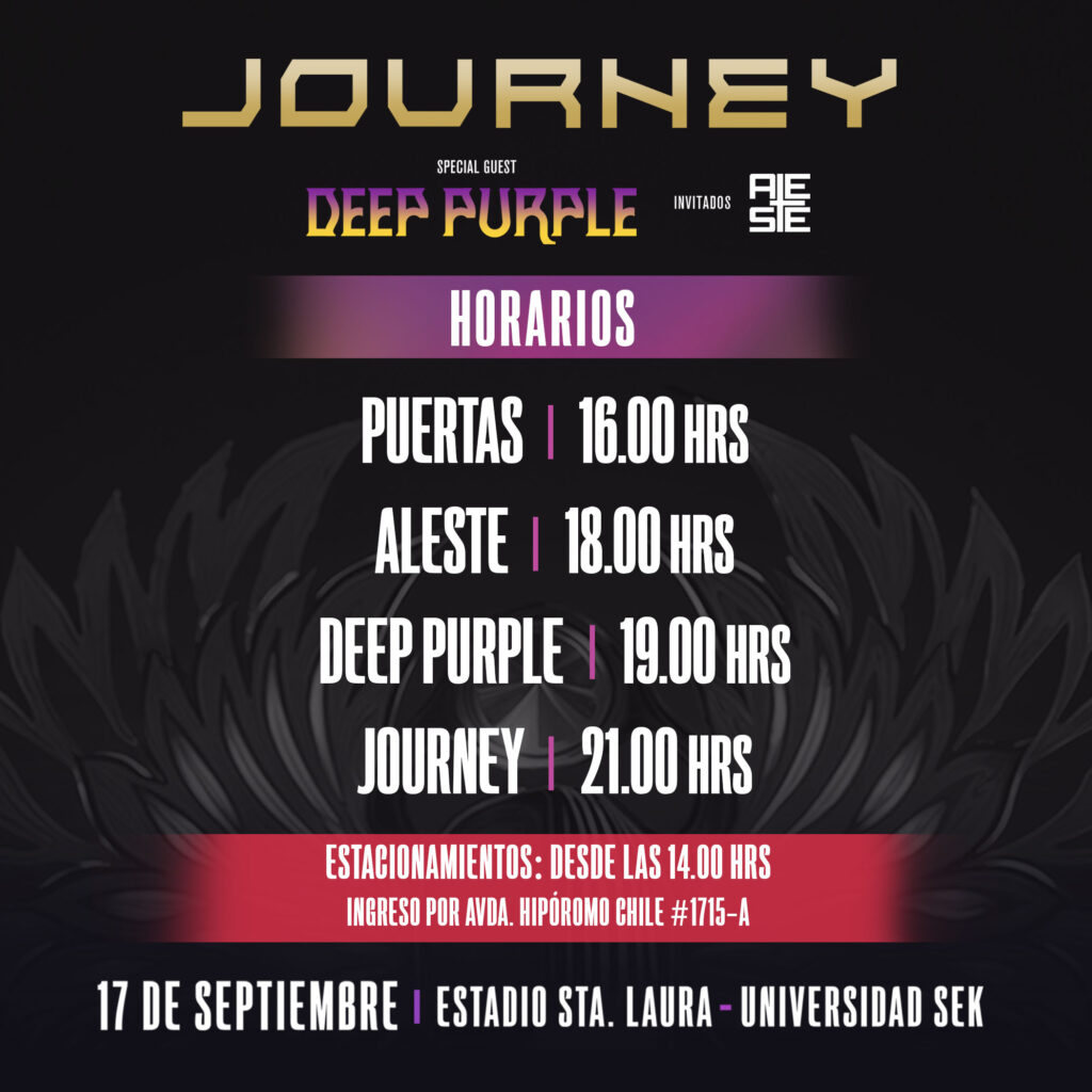 El próximo 17 de septiembre, las legendarias bandas de rock Journey y Deep Purple se presentarán en el Estadio Santa Laura – Universidad SEK en Santiago, Chile.