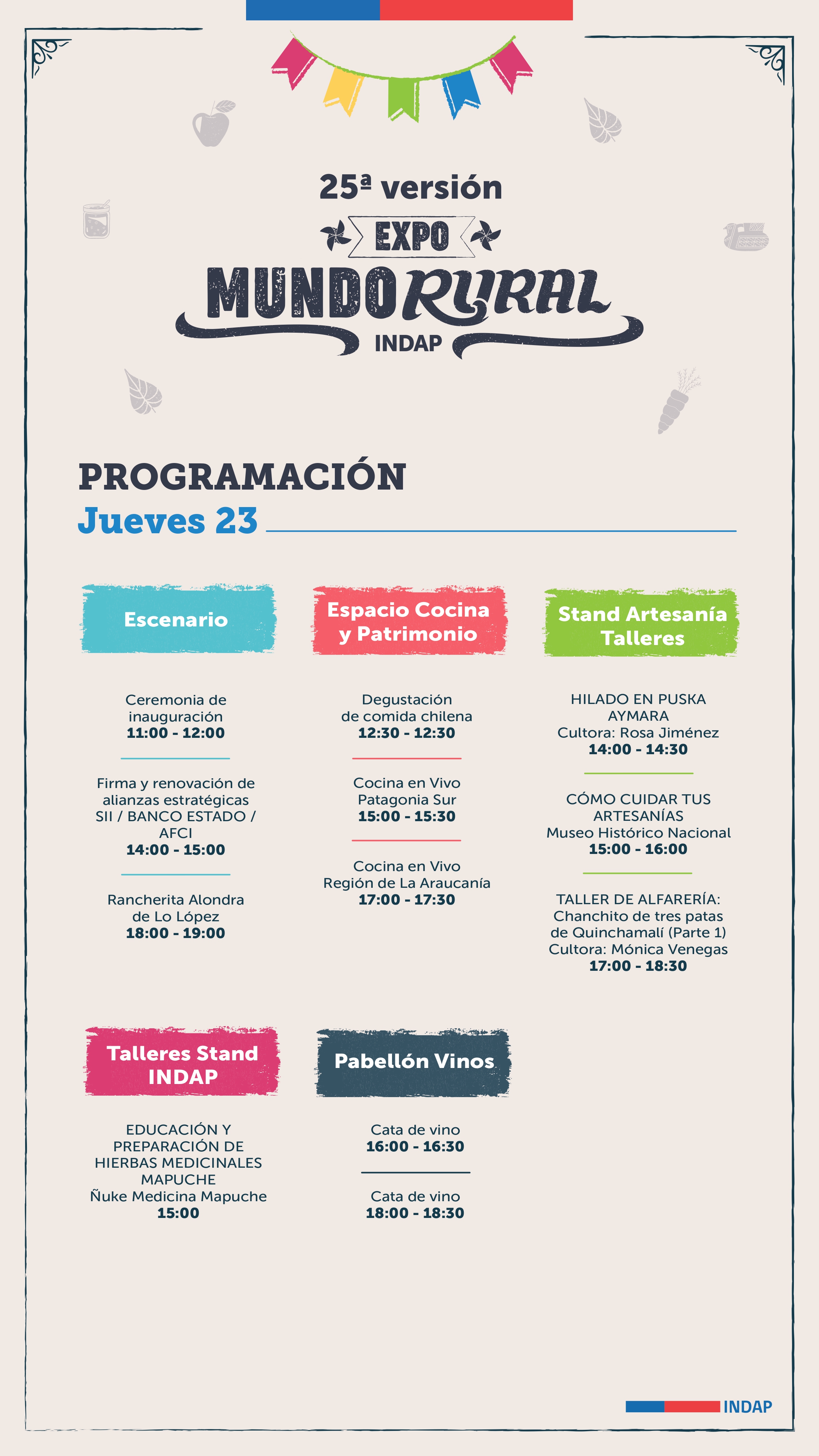 La 25ª versión de la fiesta del campo en la ciudad se realizará entre el 23 y el 26 de octubre en el Parque Estadio Nacional, comuna de Ñuñoa. La entrada es gratuita (debe descargarse en Ticketplus).