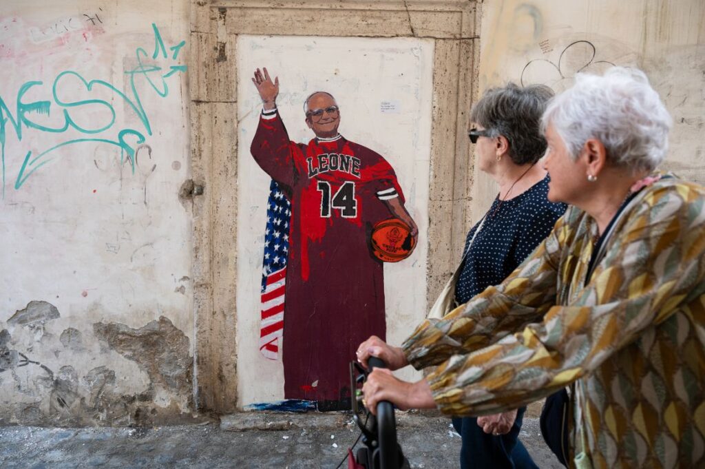Incluso ya hay un mural en Roma que lo retrata con una camiseta adaptada de los Chicago Bulls, en un rojo papal que, aunque informal, no deja de tener un aire litúrgico.