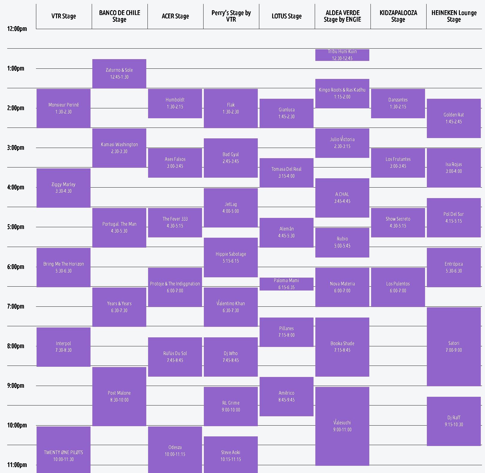 La programación del Lollapalooza Chile 2019 de los tres días, lo puedes revisar a continuación: