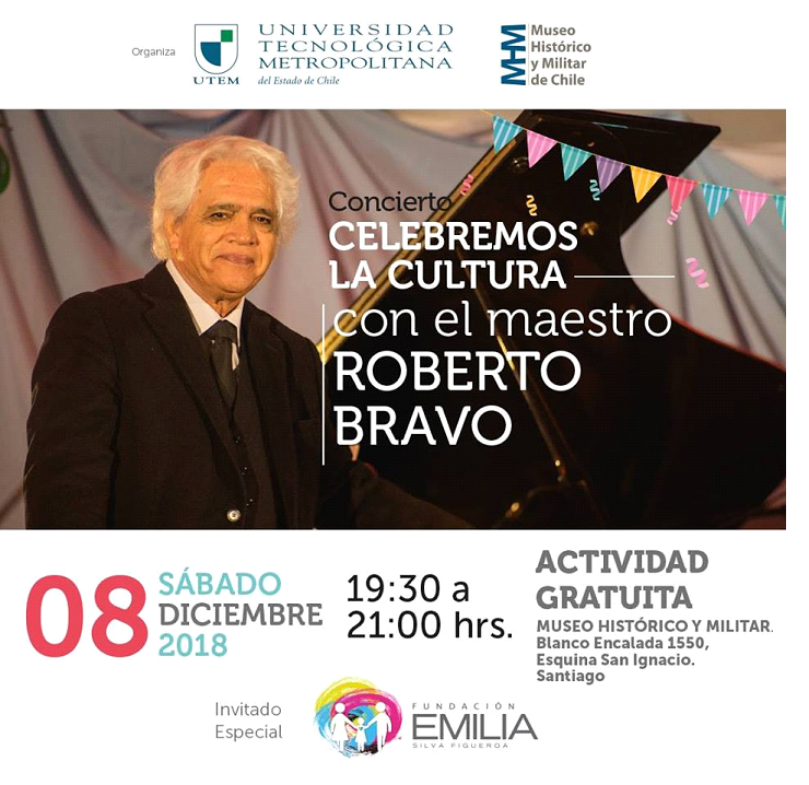 El Museo Histórico y Militar junto a la Universidad Tecnológica Metropolitana (UTEM) realizarán este sábado 8 de diciembre un evento de fin de año que será encabezado por el destacado pianista nacional Roberto Bravo.
