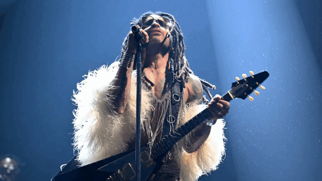Lenny Kravitz actuando en el escenario durante los MTV Video Music Awards 2024 en Nueva York el miércoles. (Noam Galai/Getty Images vía CNN Newsource)