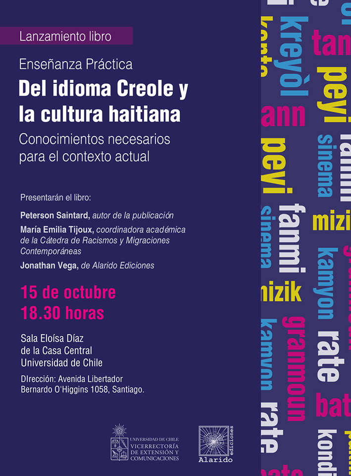 El martes 15 de octubre será el lanzamiento de la obra “Enseñanza práctica del idioma creole y la cultura haitiana, conocimientos necesarios para el contexto actual” en la Casa Central de la Universidad de Chile.