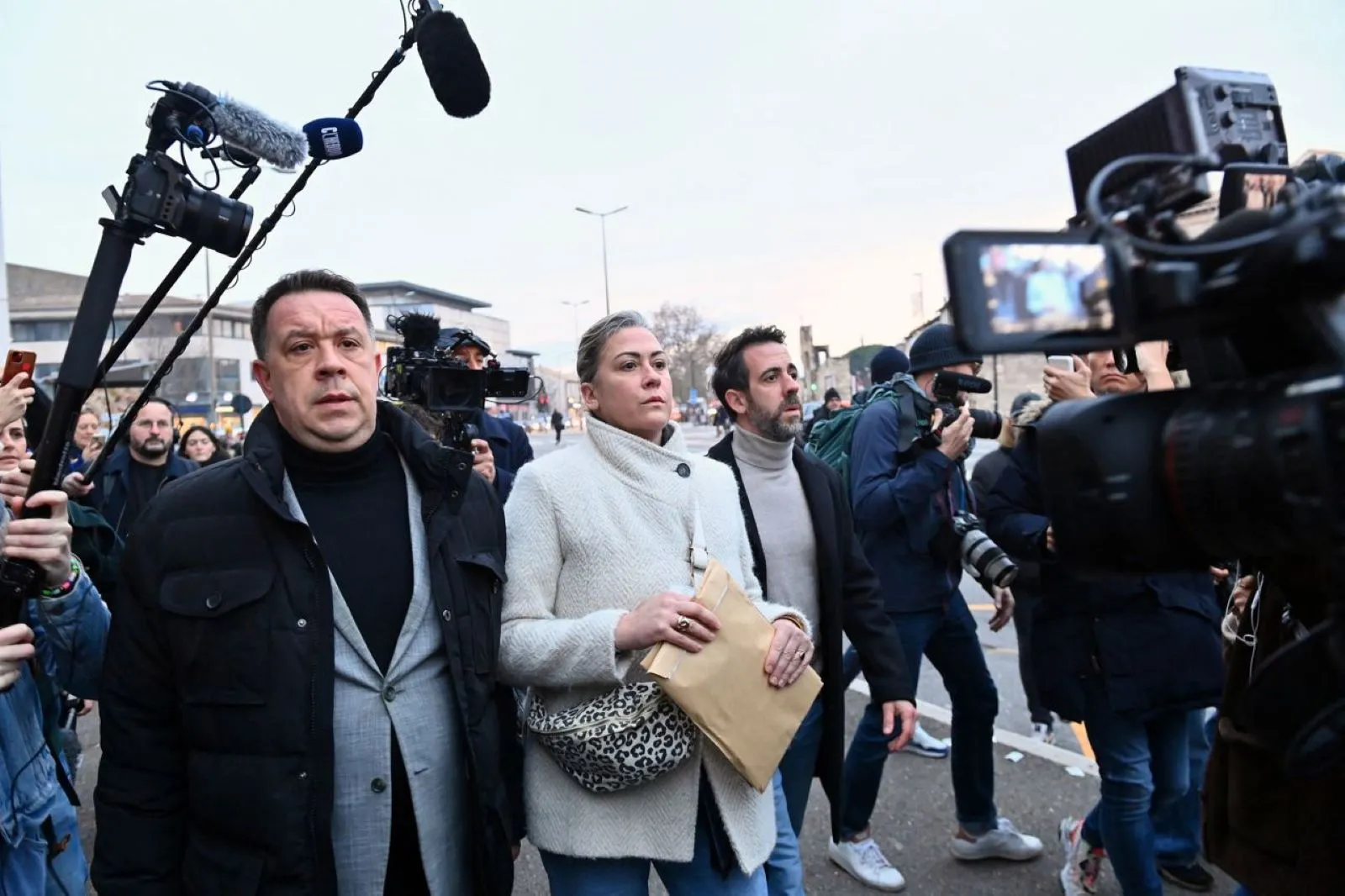 David, Caroline y Florian, los hijos de Gisèle Pelicot, llegan para asistir al veredicto en el juicio contra Dominique Pelicot y 50 coacusados, en el tribunal de Aviñón, Francia, el 19 de diciembre.