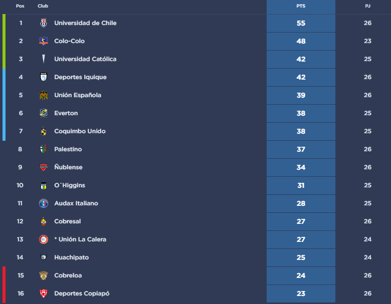 Cabe destacar que aún quedan partidos pendientes por la 26ª fecha, incluyendo el encuentro entre Coquimbo Unido y Huachipato, así como el choque de Audax Italiano contra O’Higgins.