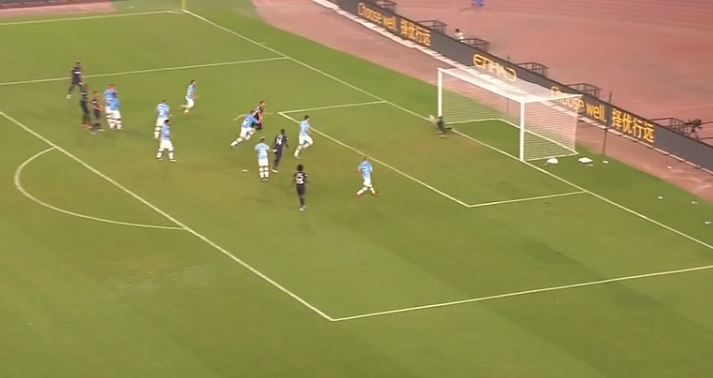 El lanzamiento del mexicano iba justo a la esquina inferior derecha de la portería. Tras pegarle al balón la mayoría pensó que sería un golazo, pero apareció Bravo.