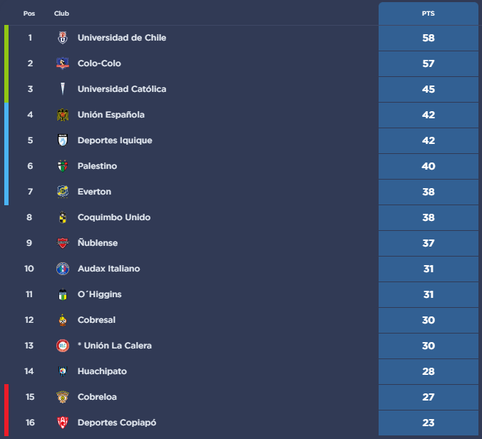 ¿Cómo está la tabla de posiciones del campeonato nacional?