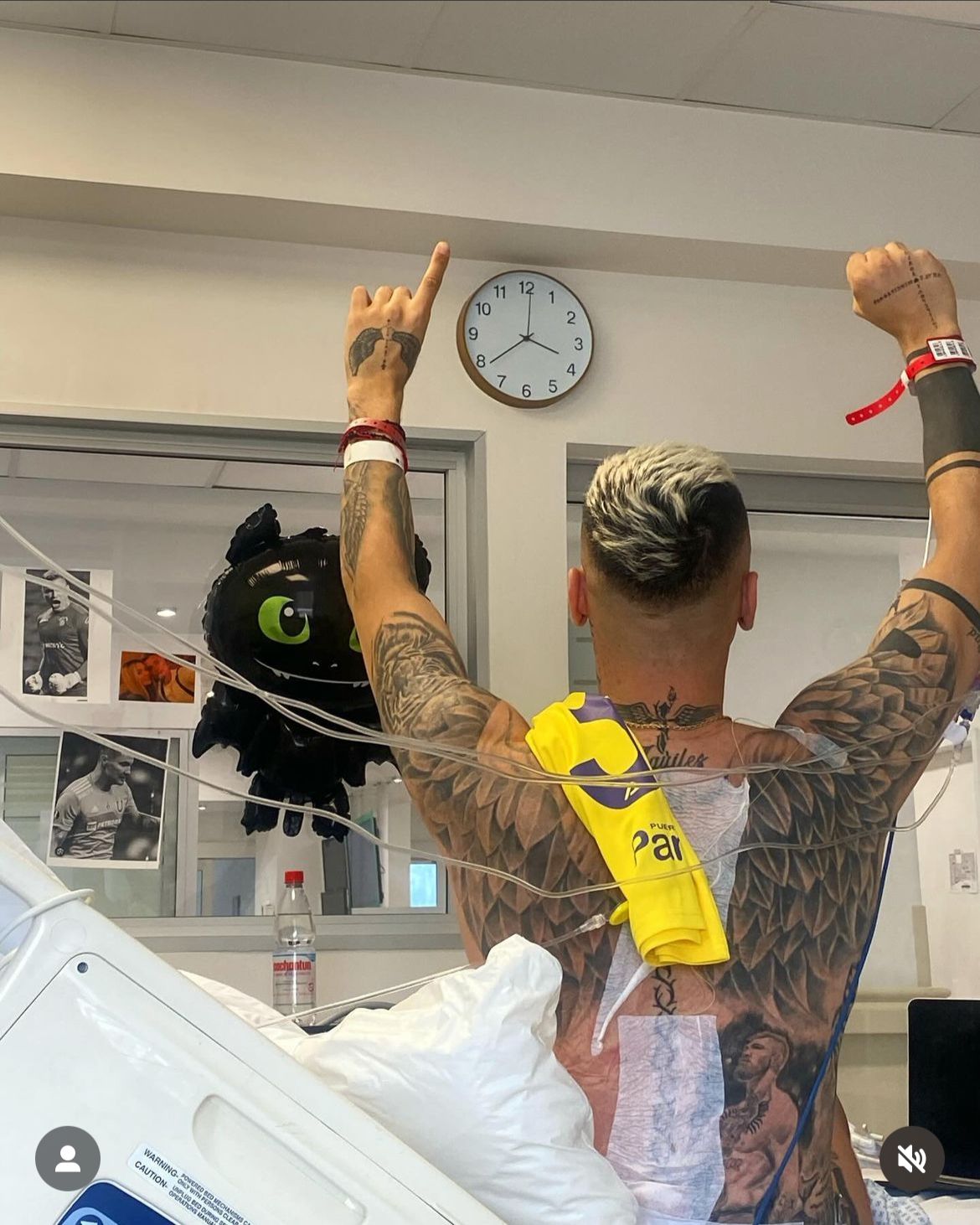 Además de fotos de él y sus seres queridos pegadas en las paredes, se pueden ver algunos de los recuerdos y mensajes que cientos de hinchas le han dejado deseándole pronta recuperación.