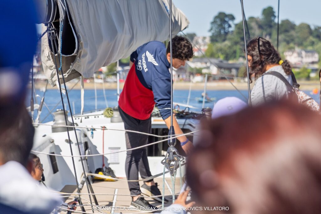 Antes de iniciar la competencia de la jornada, los menores visitaron los veleros más veloces y modernos de la flota, de la clase Soto 40, recorrieron sus cubiertas y cabinas, y plantearon a los encargados numerosas preguntas. Además, abordaron una lancha para dar un paseo por el sector.