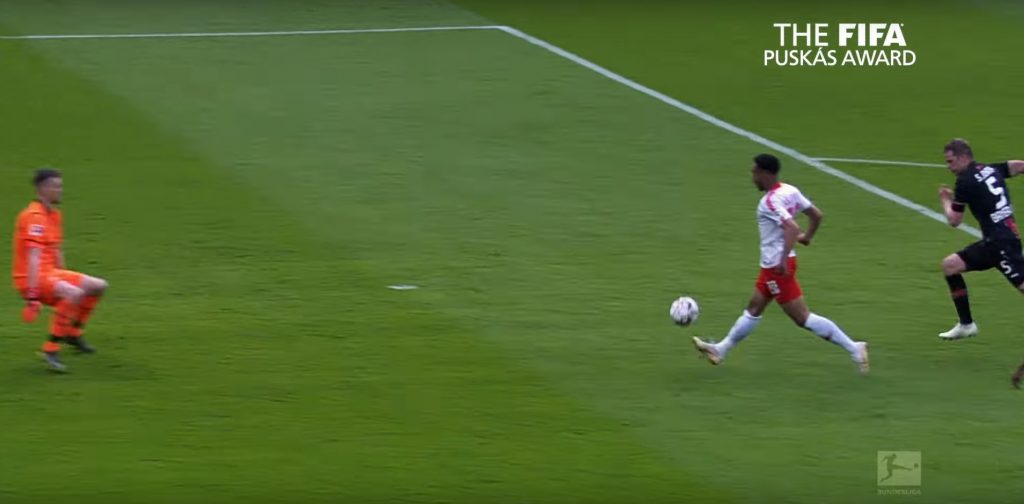 Probablemente el mejor de la Bundesliga durante la temporada. El joven delantero del Leipzig se acordó de Zidane y le anotó al Bayer Leverkusen pisando la pelota como un crack y picando el balón ante la salida del arquero como un veterano.