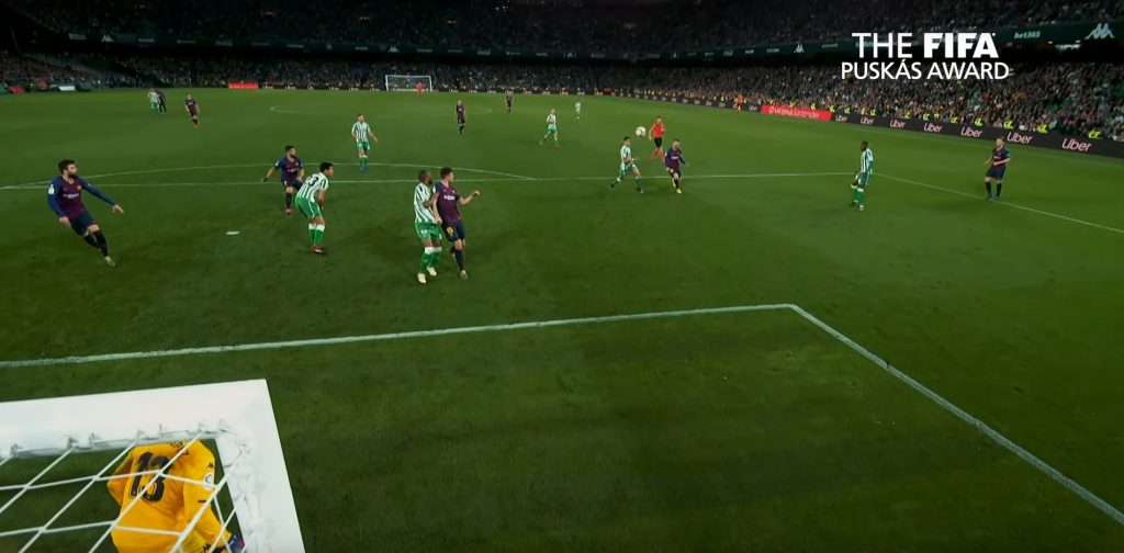 Poco queda por decir de la calidad de Lio Messi. Esa vez, el estadio entero aplaudió la actuación del argentino en una tarde en la que anotó un hat trick haciendo de todo, incluyendo este globito que sólo se puede hacer en el PlayStation.
