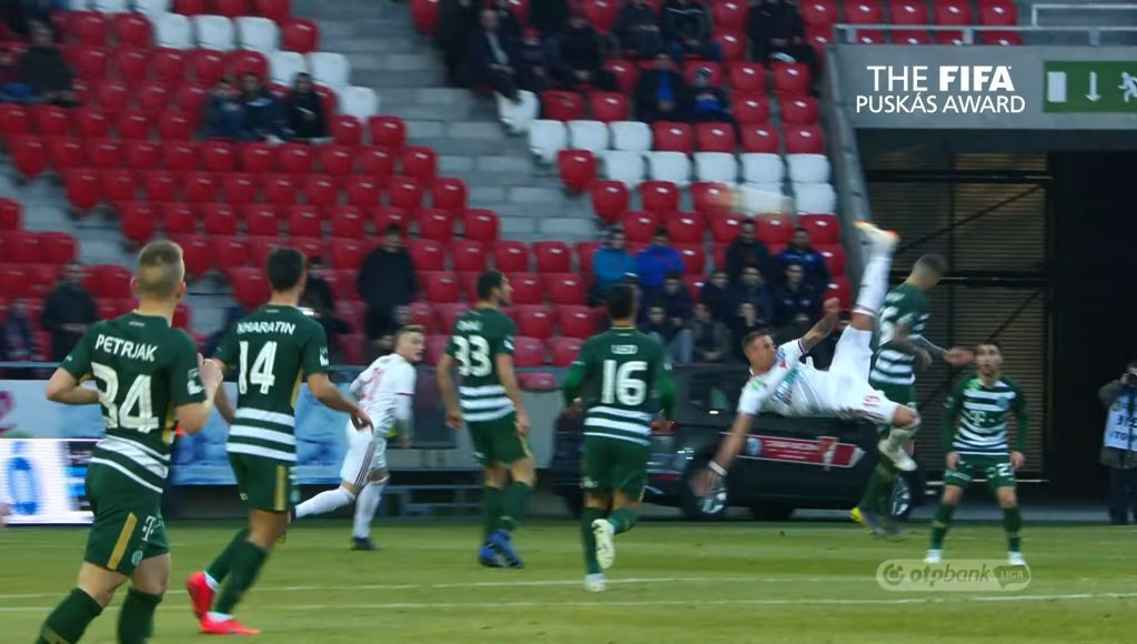 No podía faltar una chilena. La obra es de Dániel Zsóri, que no quedó del todo cómodo entre dos defensores, pero que confió en su técnica para clavarla al palo derecho y encima marcar el gol del triunfo en los descuentos.