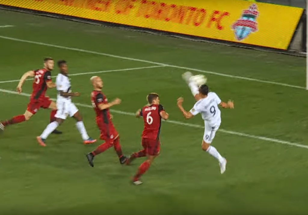 El fenómeno del LA Galaxy volvió a hacer de las suyas contra el Toronto FC con una contorsión pocas veces vista: una patada de taekwondo, girando sobre su eje, para conectar un tiro inatajable al costado izquierdo del arquero.