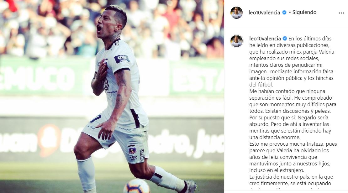 Leonardo Valencia, mediocampista de Colo Colo, respondió luego de ser acusado en redes sociales de violencia intrafamiliar y de no pagar la pensión alimenticia de su hijo, donde debe más de 30 millones de pesos.