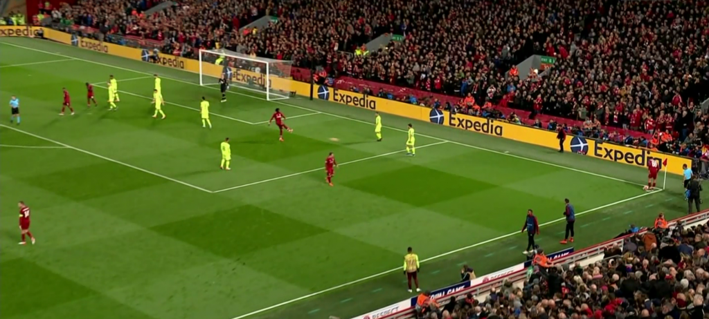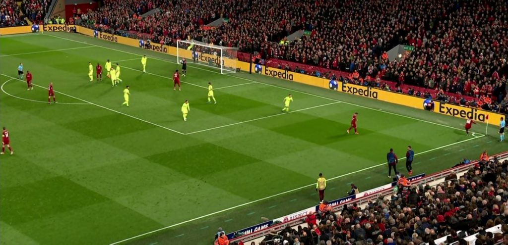 Minuto 78. Un córner y una pausa perfecta para reorganizar el muro defensivo blaugrana. Incluso Origi se da el tiempo de sacar un balón extra fuera de la cancha. Nadie presta atención.