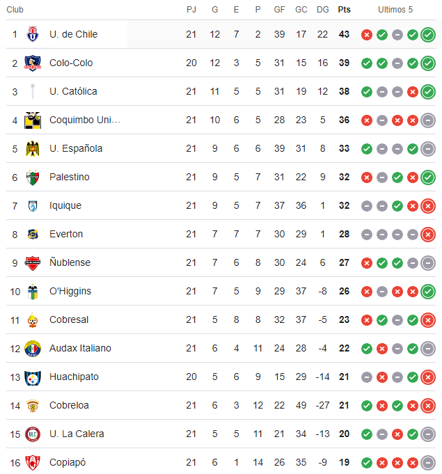 En su último encuentro, el elenco estudiantil derrotó 4-0 a Cobreloa, logrando sumar 43 puntos para mantenerse como punteros de la tabla de posiciones; mientras que la Unión empató a cero con Ñublense, y continúa en la quinta posición, con 33 unidades.