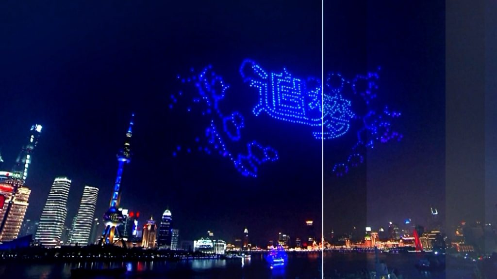 Un espectáculo de drones fue el encargado de dar la bienvenida al año 2020 en Shanghai.