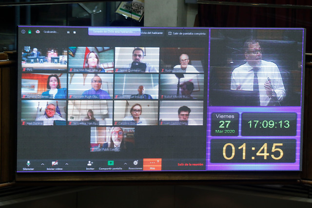 Vista de las pantallas con senadores realizando teletrabajo, durante la sesión especial del Senado. FOTO: LEONARDO RUBILAR CHANDIA/AGENCIAUNO