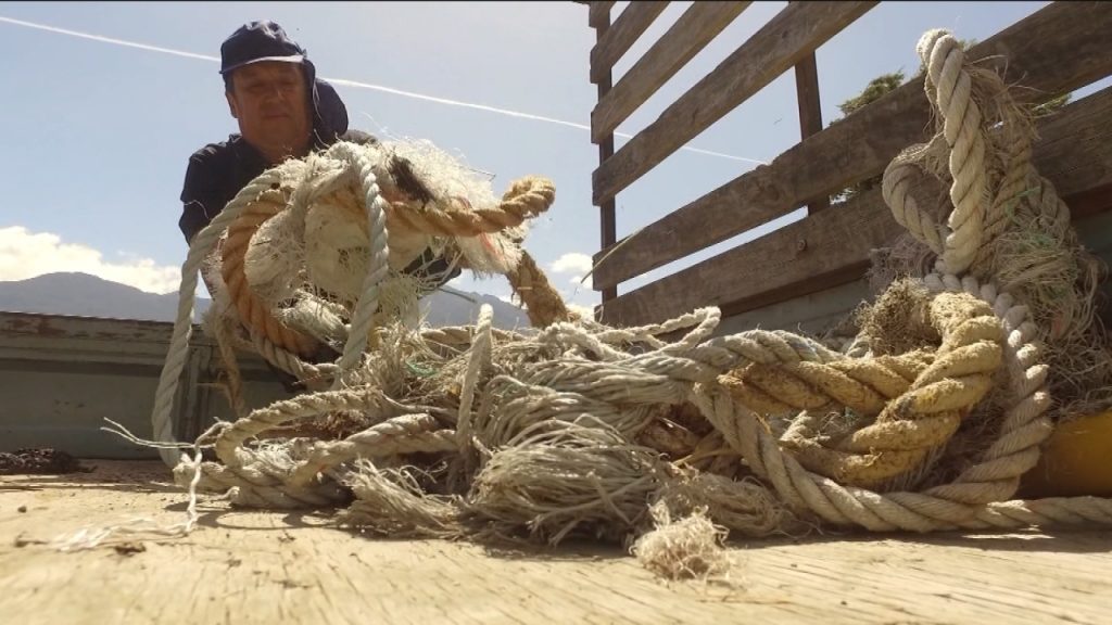 Tres veces a la semana Pedro Rubio, uno de los recicladores de Karün, va a la playa para recoger cabos dejados por la actividad pesquera y que son devueltos por el mar a las cosas. Hasta 50 kilos de estos materiales puede llegar a recolectar.