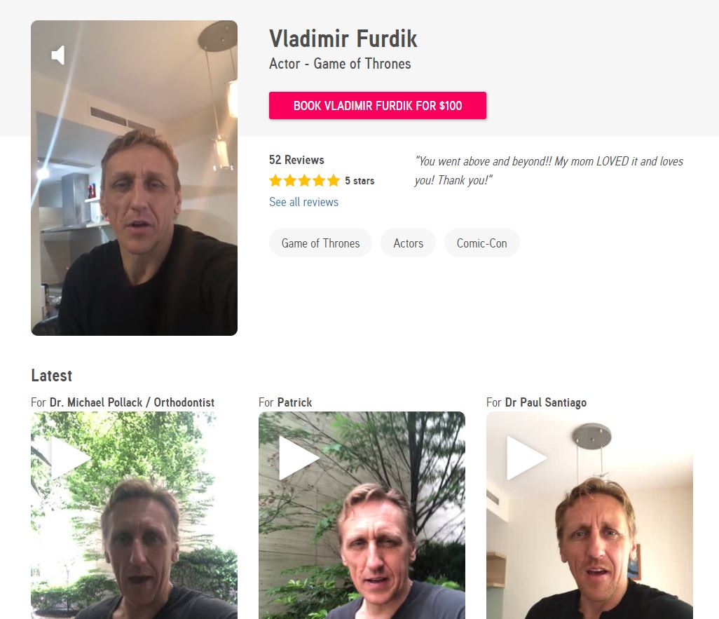 Ian Beattie (Meryn Trant), Vladimir Furdik (The Night King), James Faulkner (Randyll Tarly) y Roger Ashton-Griffiths (Mace Tyrrell) son algunos de los actores de “Game of Thrones” que están dispuestos a enviarte un saludo personalizado.