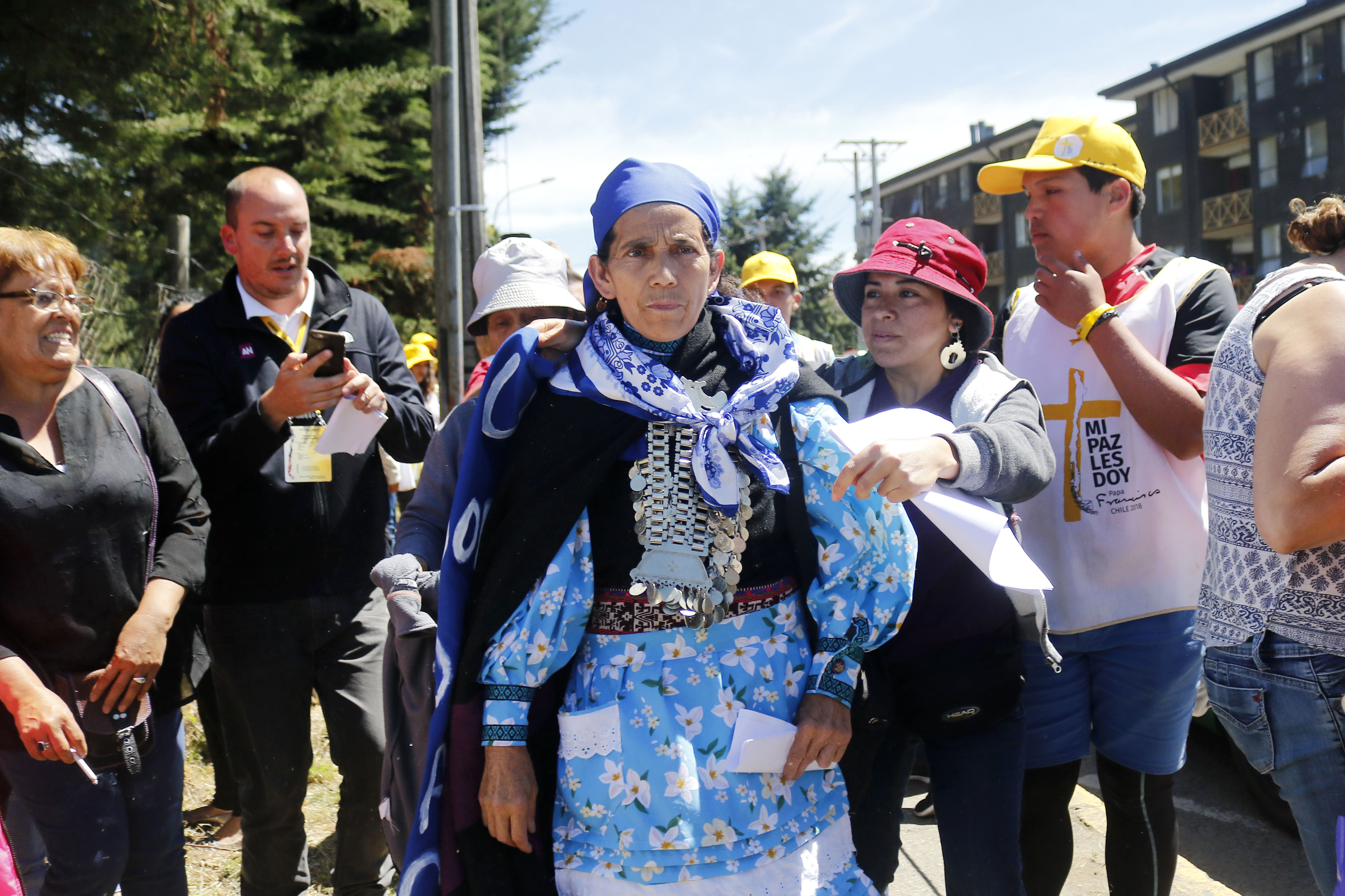 Tras la misa, la machi Francisca Linconao intentó acercarse para hacerle entrega de una carta. Sin embargo, esto fue negado por Carabineros.
