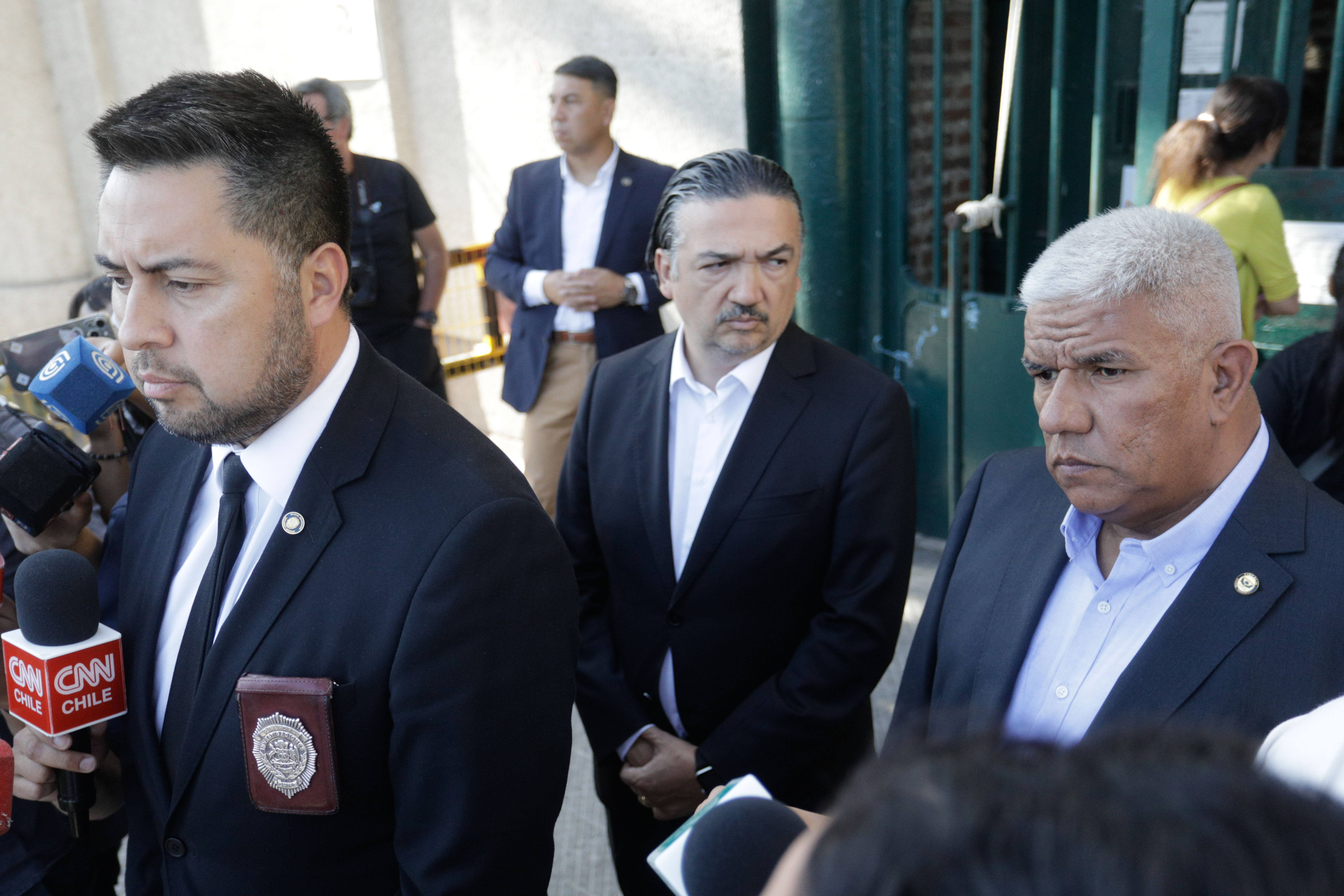 El Subprefecto Cristián Sepúlveda, jefe de la Brigada contra el Crimen Organizado BRICO, acompañado del fiscal Regional Occidente, Marcos Pastén y el fiscal Patricio Rosas entregan una vocería debido a las investigaciones por la fuga de dos reos desde la ex penitenciaria.