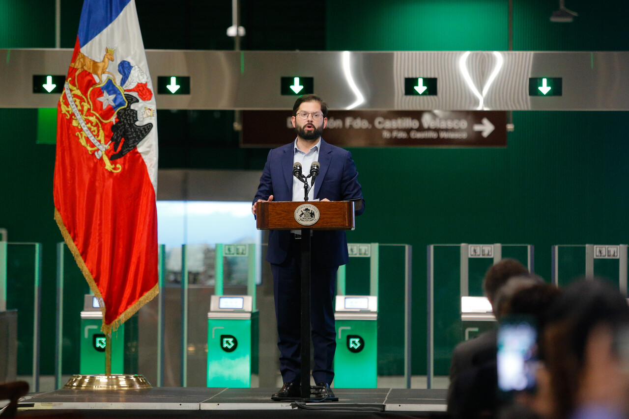 Gabriel Boric en inauguración de la Línea 3 / Agencia UNO