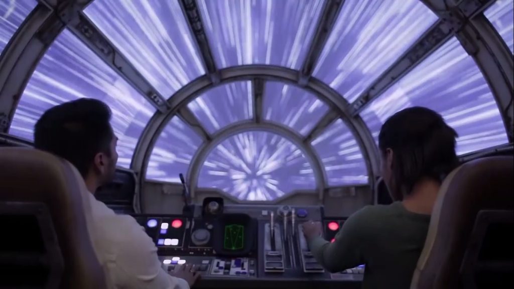 Smuggler’s Run permite a los visitantes pilotear el Millenium Flacon usando tecnología tope de línea de renderización de video en tiempo real.