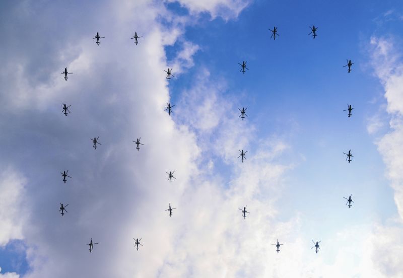 El escalón aéreo que custodia la bandera ondea sobre la Plaza de Tiananmen durante el 80 aniversario de la victoria en la Guerra de Resistencia del Pueblo Chino contra la Agresión Japonesa y la Guerra Mundial Antifascista el miércoles.