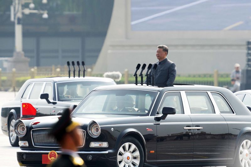 Xi Jinping se encuentra en una limusina mientras inspecciona a los miembros del Ejército Popular de Liberación.