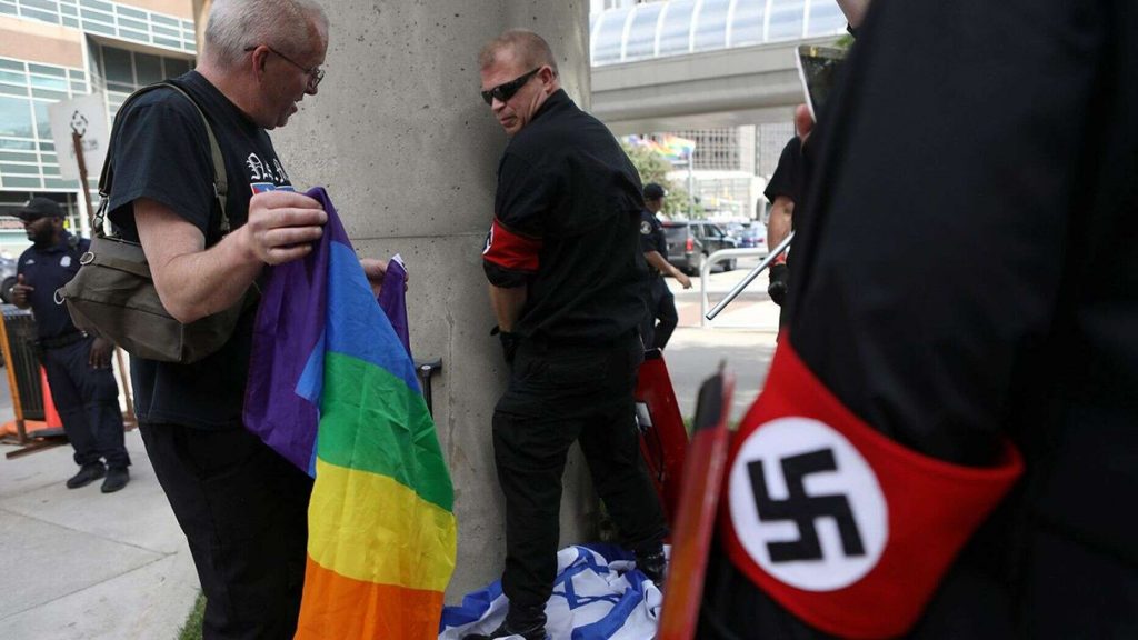 Un grupo de nacionalistas blancos marcharon en un evento LGBT+ en Detroit, lo hicieron mostrando saludos nazis, portando armas y escudos.