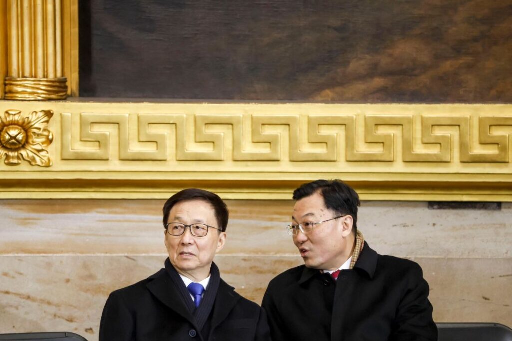 Han Zheng, a la izquierda, vicepresidente de la República Popular China, asiste a la toma de posesión de Donald Trump como próximo presidente de los Estados Unidos en el Capitolio de los Estados Unidos el 20 de enero. Shawn Thew/Pool/Getty Images.