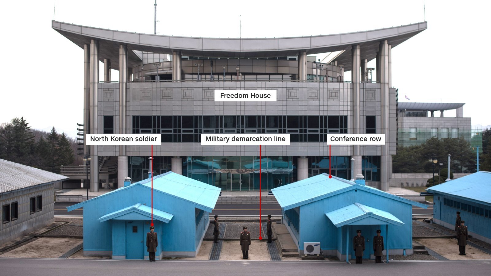 El JSA es una de las últimas reliquias de la Guerra Fría. El año pasado, un soldado norcoreano fue baleado varias veces por sus compatriotas mientras se lanzaba a la parte sur de la zona desmilitarizada en un intento de deserción captado por la cámara.