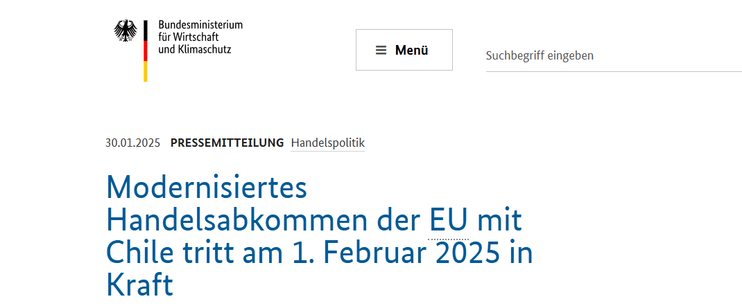 Según recordaron en el Ministerio de Economía de Alemania, el acuerdo “también facilitará a las empresas europeas la prestación de servicios en Chile” y ofrecerá a las firmas del Viejo Continente “oportunidades significativamente mejores de participar en licitaciones para contratos públicos en Chile”.