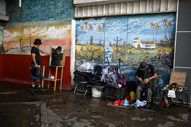 Un zapatero repara un zapato en una calle del barrio Quinta Crespo de Caracas, el 14 de octubre de 2025. FEDERICO PARRA/AFP/Getty Images